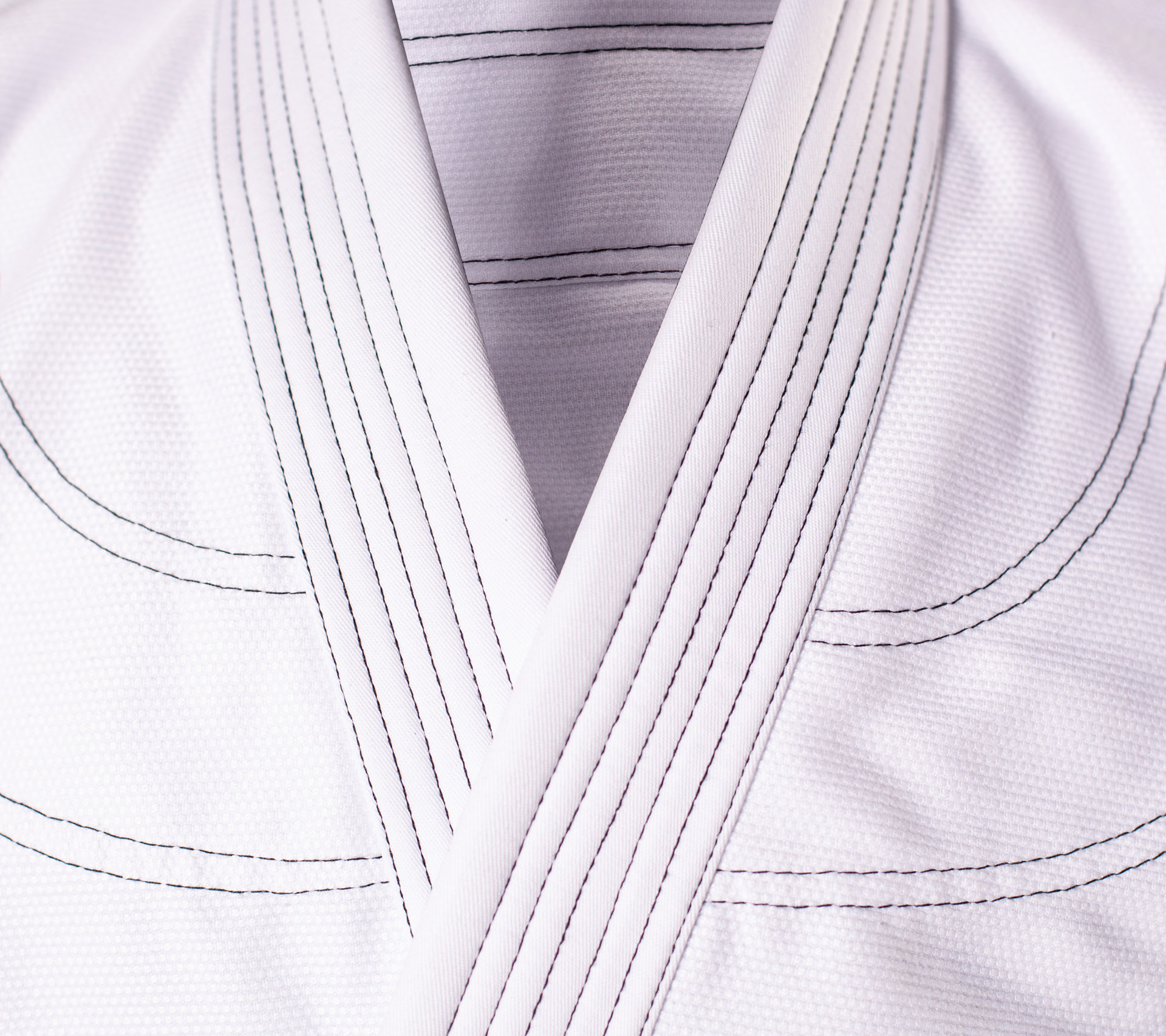 The DANRHO Brazilian Jiu Jitsu suit features a medium-weight jacket (weight: 300-350 g/m²) that is pre-shrunk and woven using the pearl weave method.