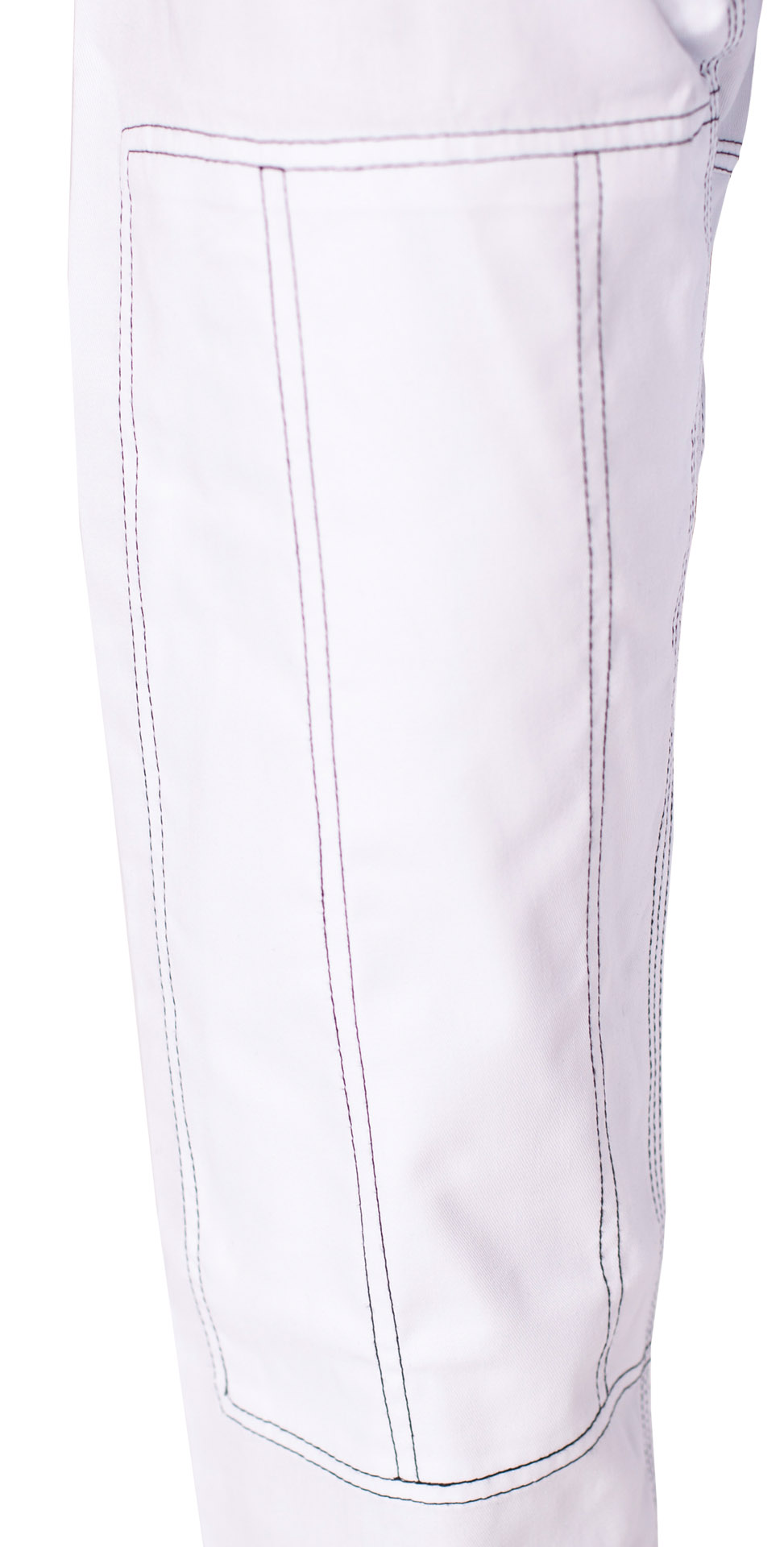 - The trousers (weight: 200 g/m²) are made of durable twill with a drawstring.