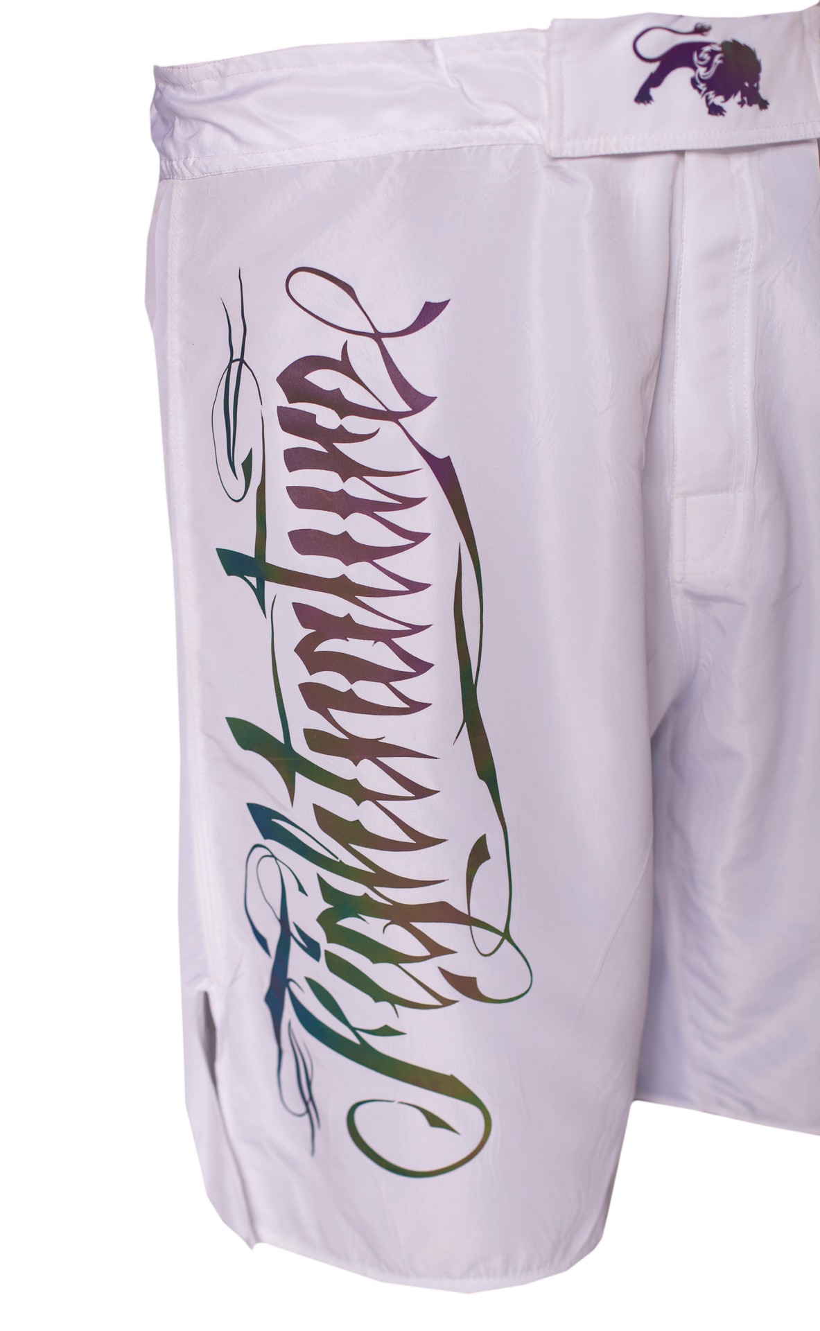 The MMA shorts featuring a reflective FIGHTNATURE print in rainbow colors are eye-catching and very comfortable for training and competition.