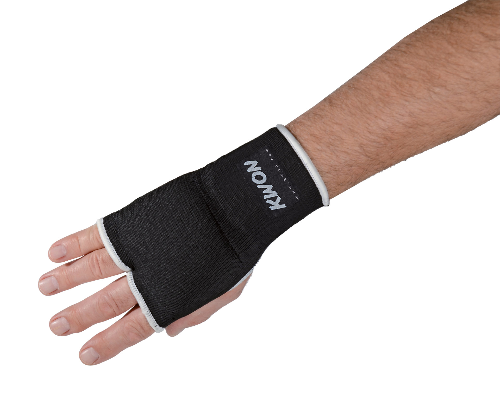 The elastic bandage is easy to put on or take off and is close on the wrist of the boxer or kickboxer.