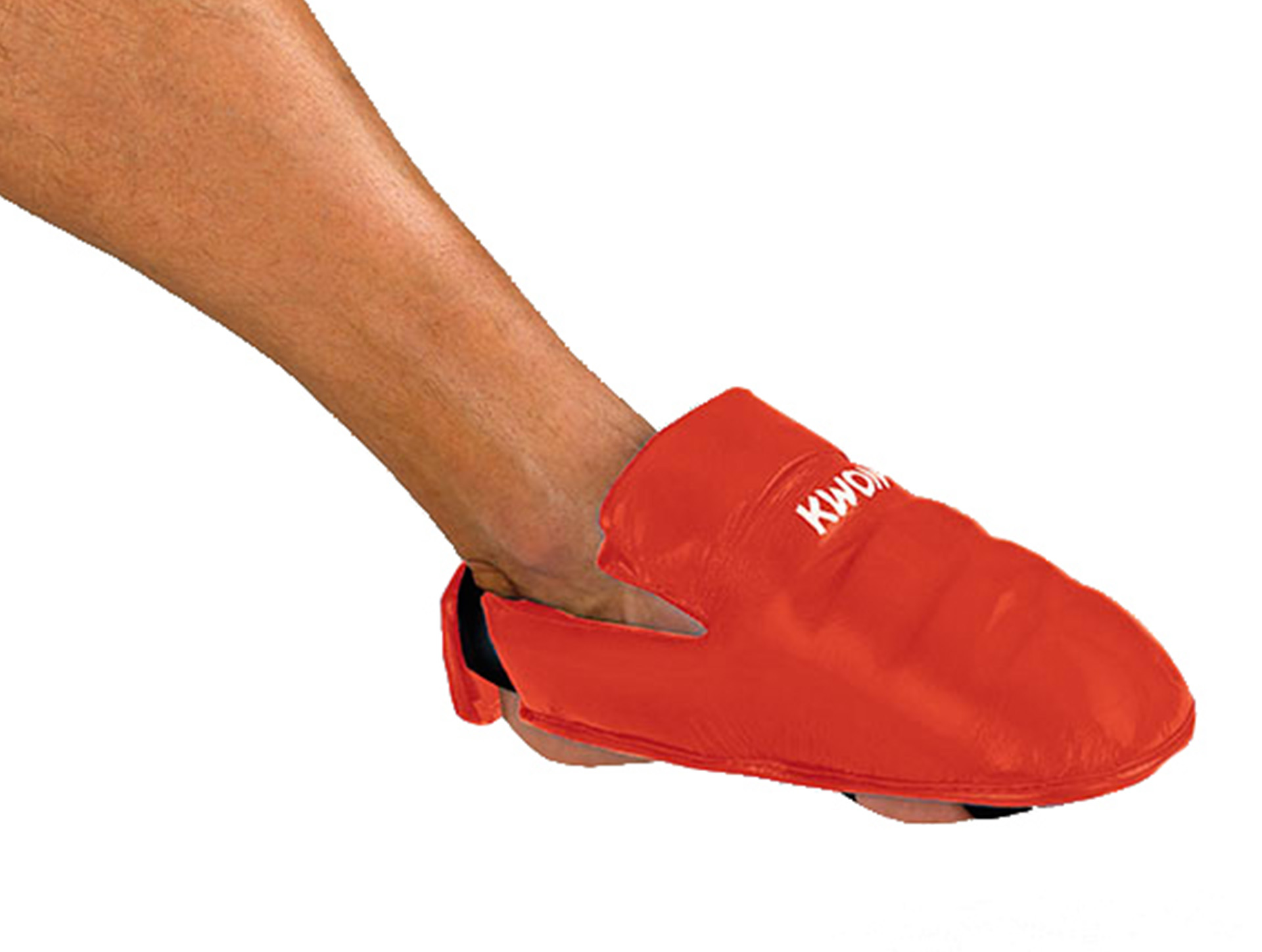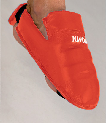 The ergonomically shaped foot protectors with excellent shock-absorbing properties are designed for karate fighting sports.
