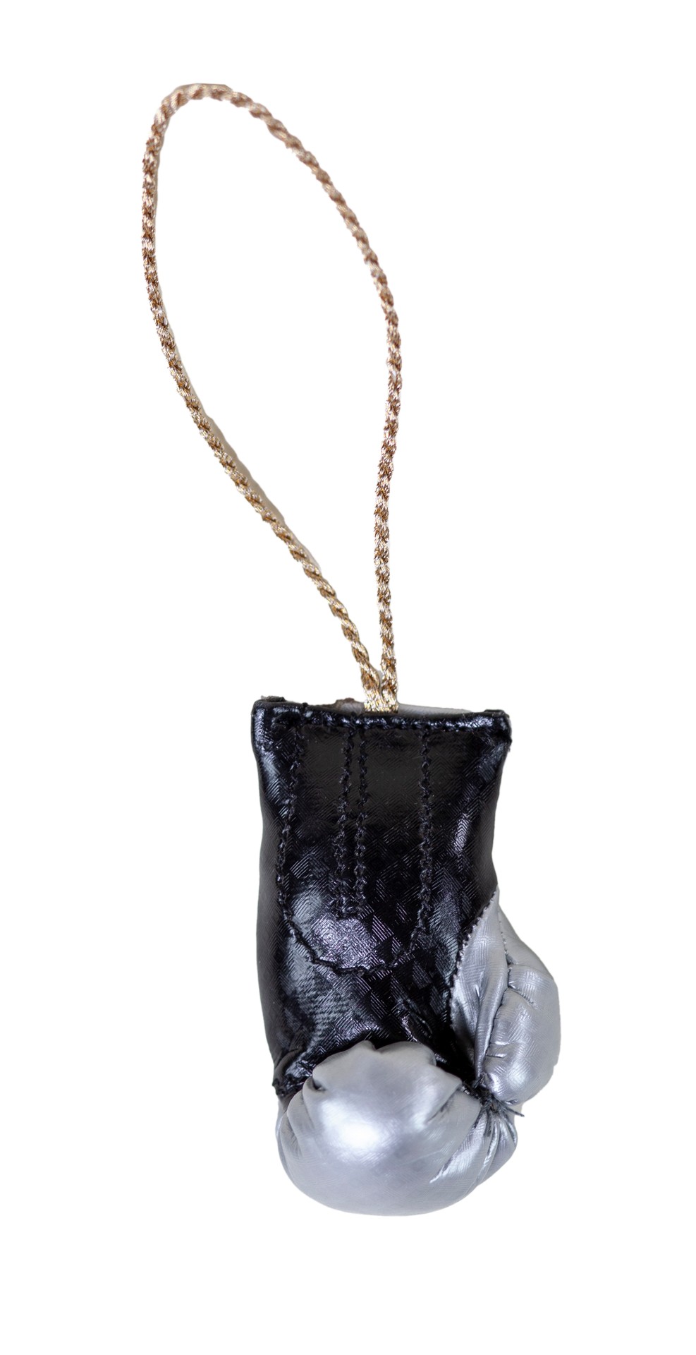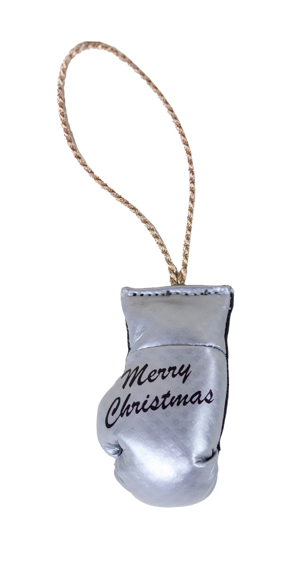 This Christmas decoration in the shape of a boxing glove is a beautiful decoration for your tree or other Christmas decorations.