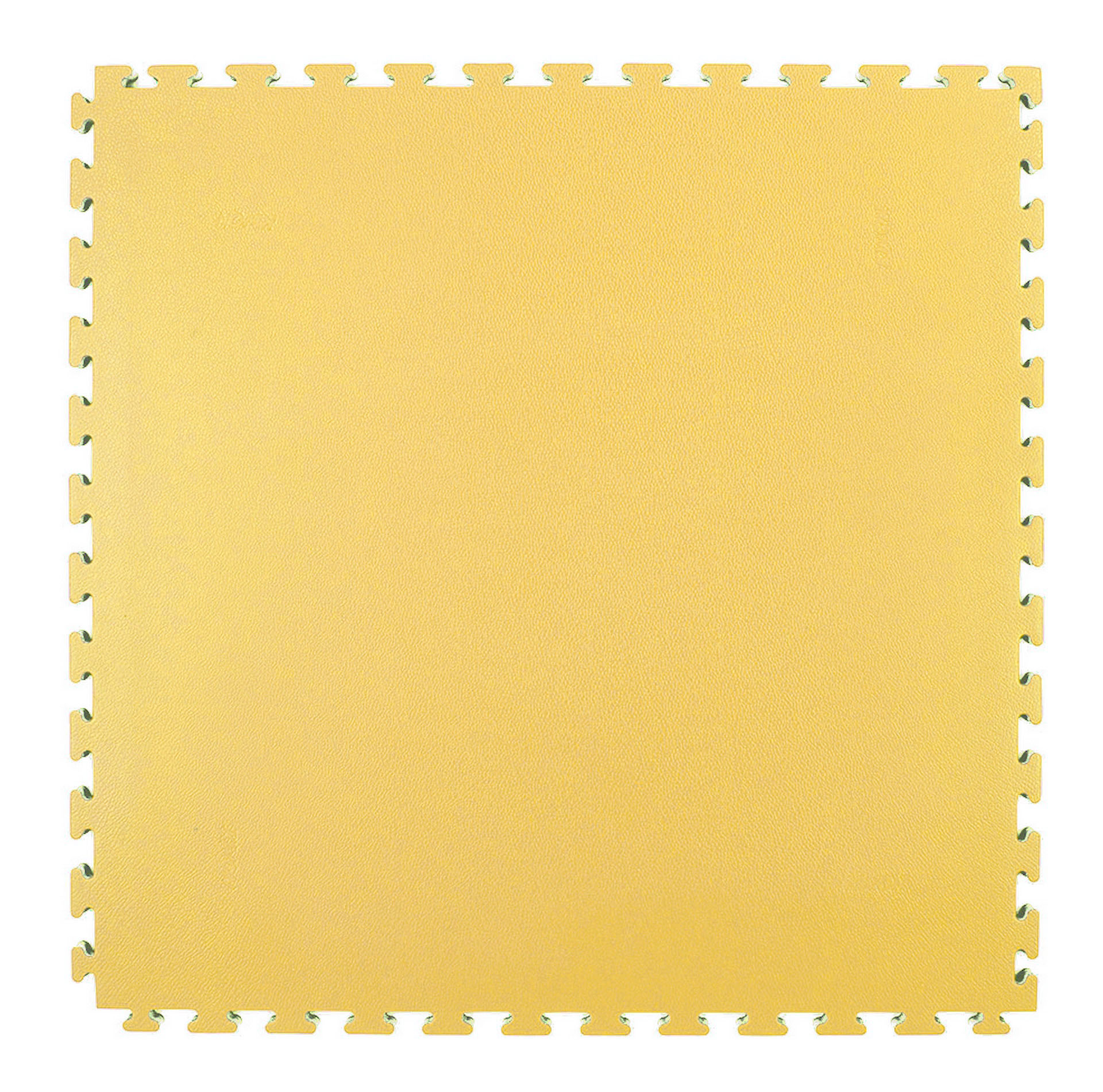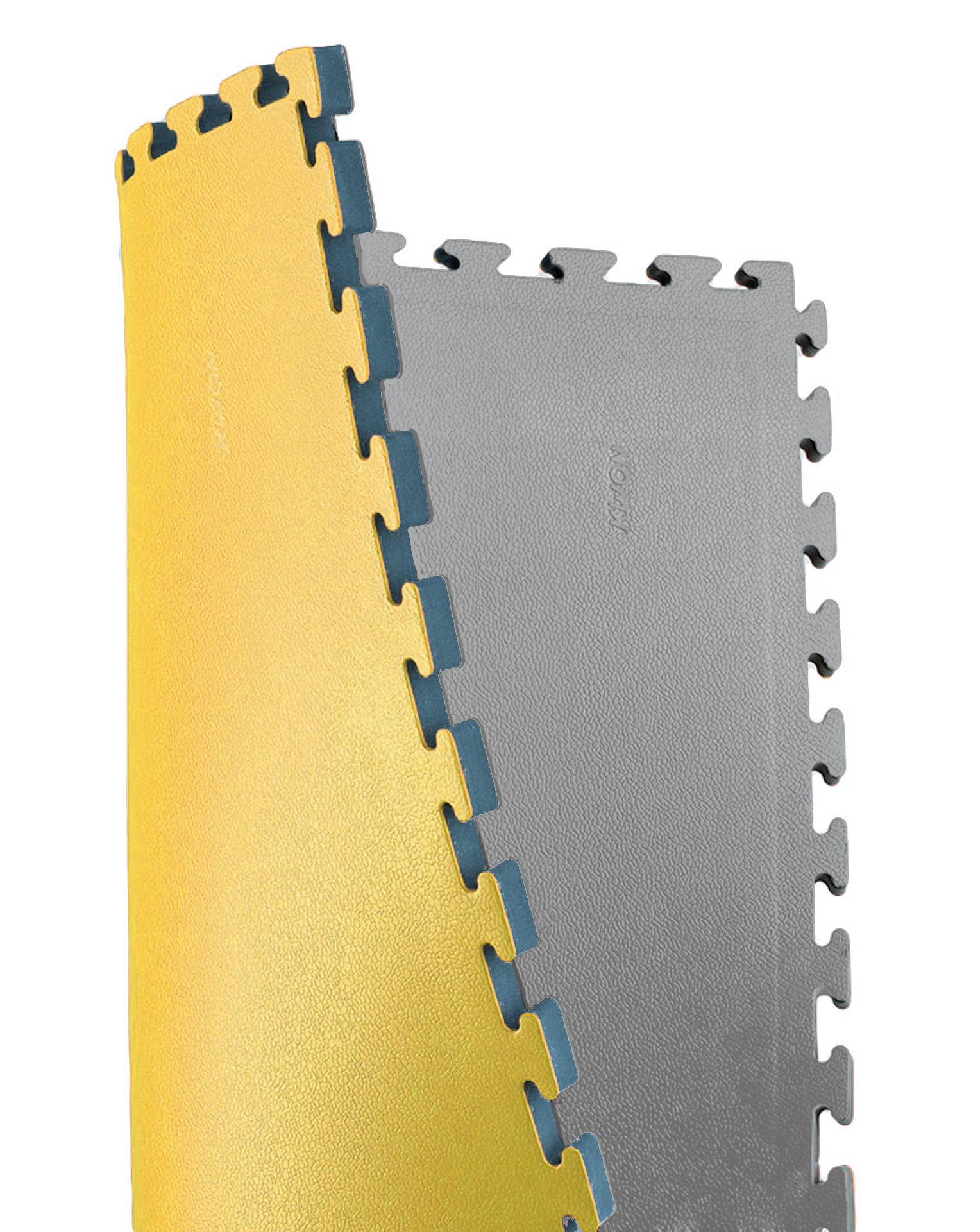 The foam mat with a nubby anti-slip surface is laid out using a plug-in system.
