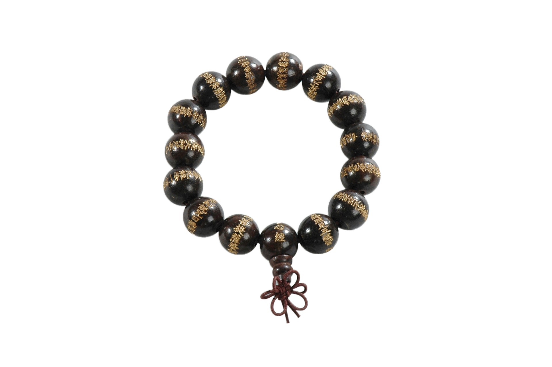 The Buddhist bracelet made of cedar wood is embellished with prayer ornaments of the Shaolin monks.