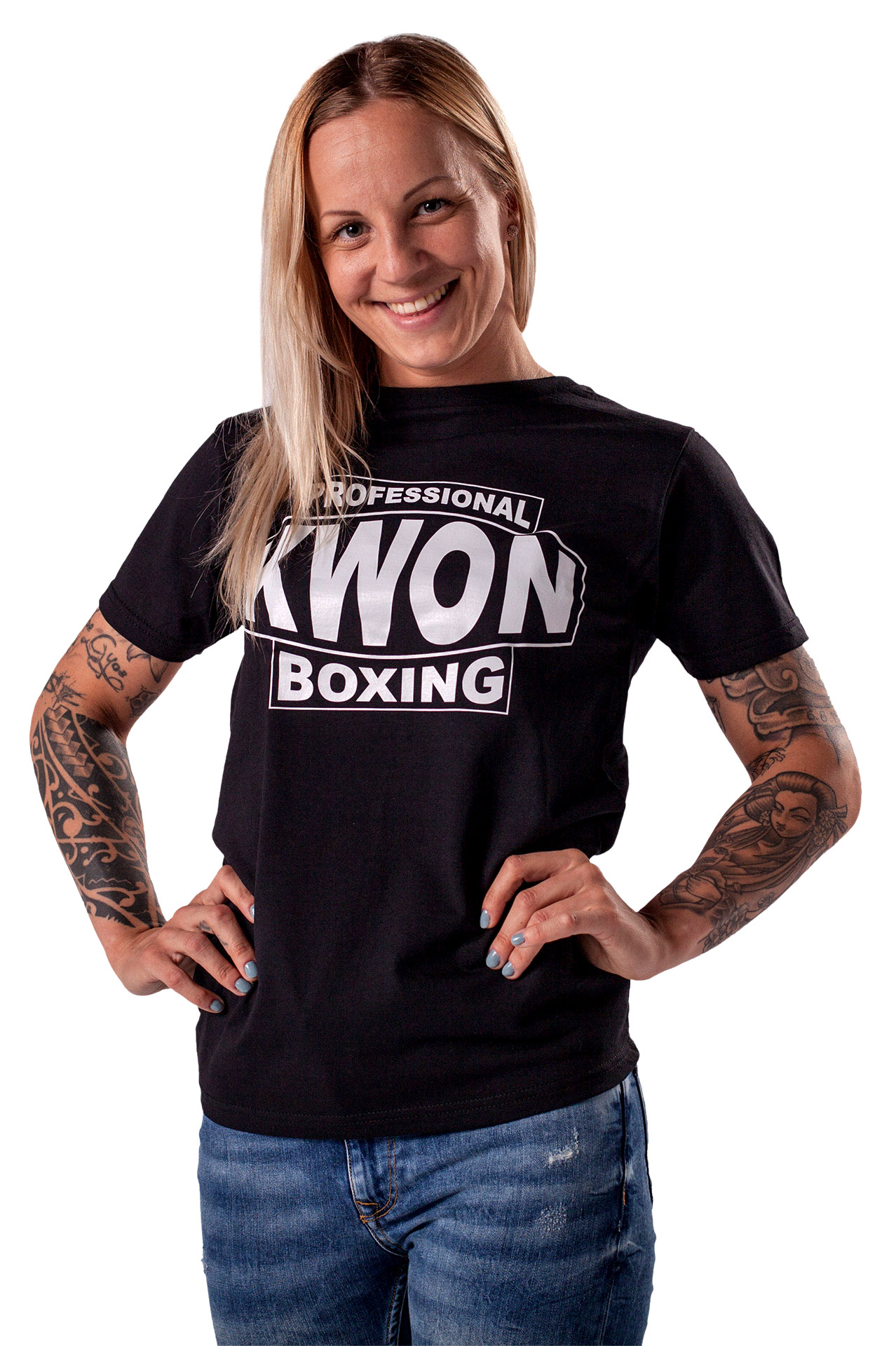 High-quality black unisex T-shirt made of 100% cotton with a large KWON PROFESSIONAL BOXING logo on the chest.