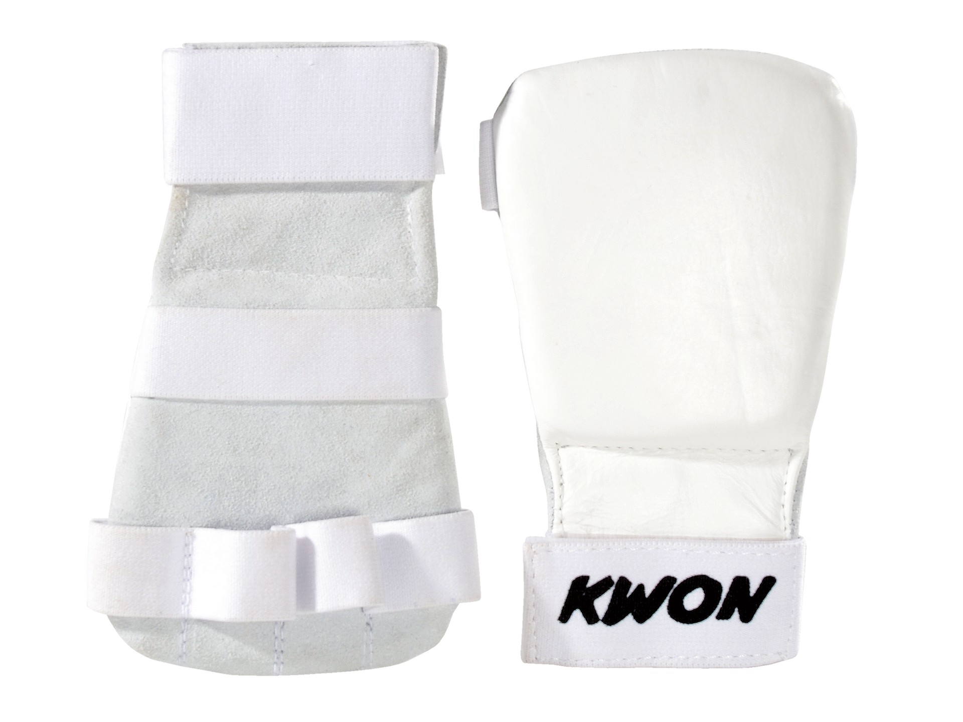 The wide Velcro closure at the wrist top, as well as the finger holes, ensure a good fit during martial arts training.