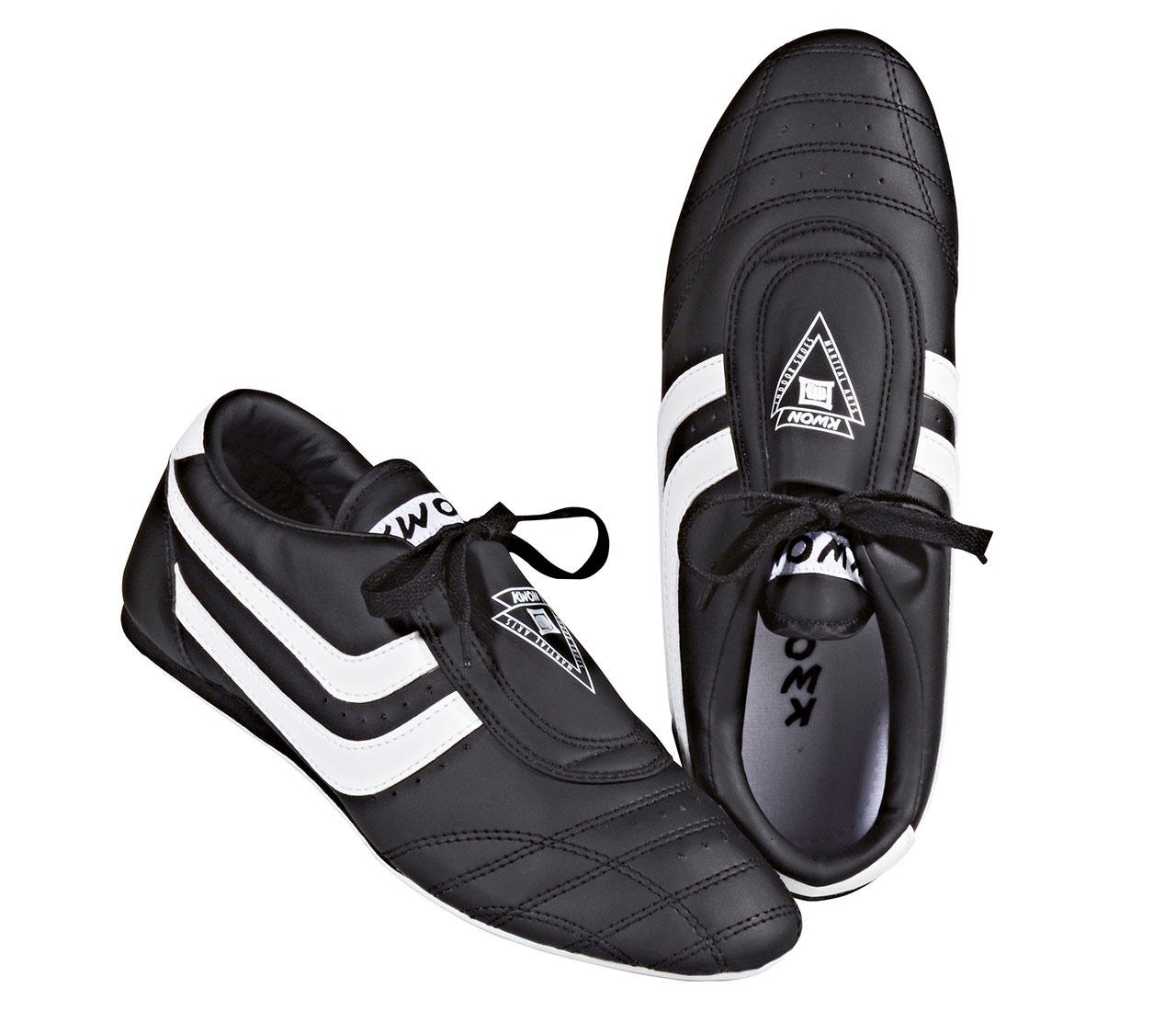 • The classic KWON indoor training shoe for beginners features a thin, elastic rubber sole and a raised heel and ventilation holes.